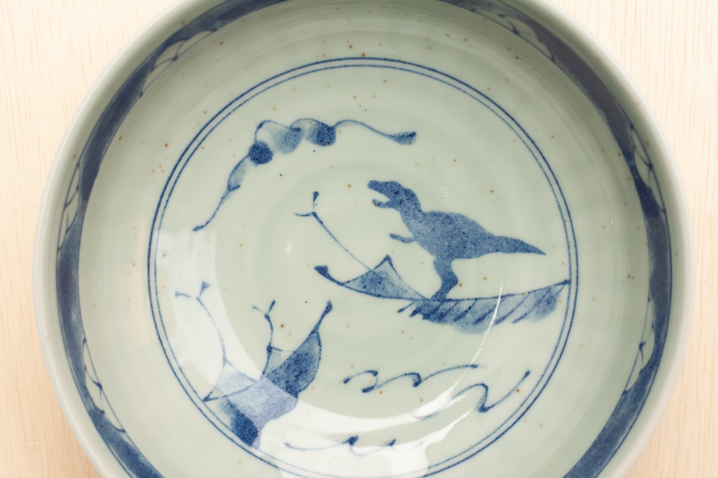 日本の伝統的な文様と地に眠った恐竜たちのコラボレーション!古き良き魅力的な文様のなかに恐竜がひっそりと潜むデザインは、大人かわいいを感じながら日常にも使いやすいアイテムです。サラダやシリアルはもちろん、深さもある小鉢で煮物や汁気のあるおかず料理にも最適です。大人から子供まで愛される一皿に。きっと新しい物語を紡ぐでしょう。